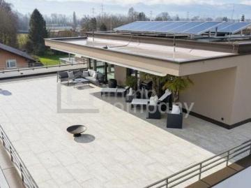 Willkommen in Ihrem neuen exklusiven Zuhause in Koblach - einer einzigartigen Penthouse-Wohnung, die nicht nur durch ihre moderne Ausstattung besticht, sondern auch durch die atemberaubende Lage und einem herrlichen Bergblick. Mit einer Gesamtfläche von 85,44 m² und 3 hellen Zimmern ist diese Immobilie ideal für Singles, Paare und kleine Familien. Die Immobilie beeindruckt mit einer durchdachten und offenen Raumaufteilung, die viel Sonnenlicht herein lässt. Das Herzstück der Wohnung ist der großzügige Wohn- und Essbereich mit einer exklusiven, offen gestalteten Einbauküche, ausgestattet mit hochwertigen Bosch-Geräten und einem BORA-Kochfeldabzugssystem - hier können Sie kulinarische Köstlichkeiten zubereiten und gesellige Abende mit Freunden und Familie zu verbringen. Das Highlight der Wohnung ist die 188,52 m² große Terrasse (39,04 m² überdacht), die Ihnen nicht nur einen Platz im Freien bietet, sondern auch einen spektakulären Ausblick auf die umliegenden Berge. Hier können Sie den T